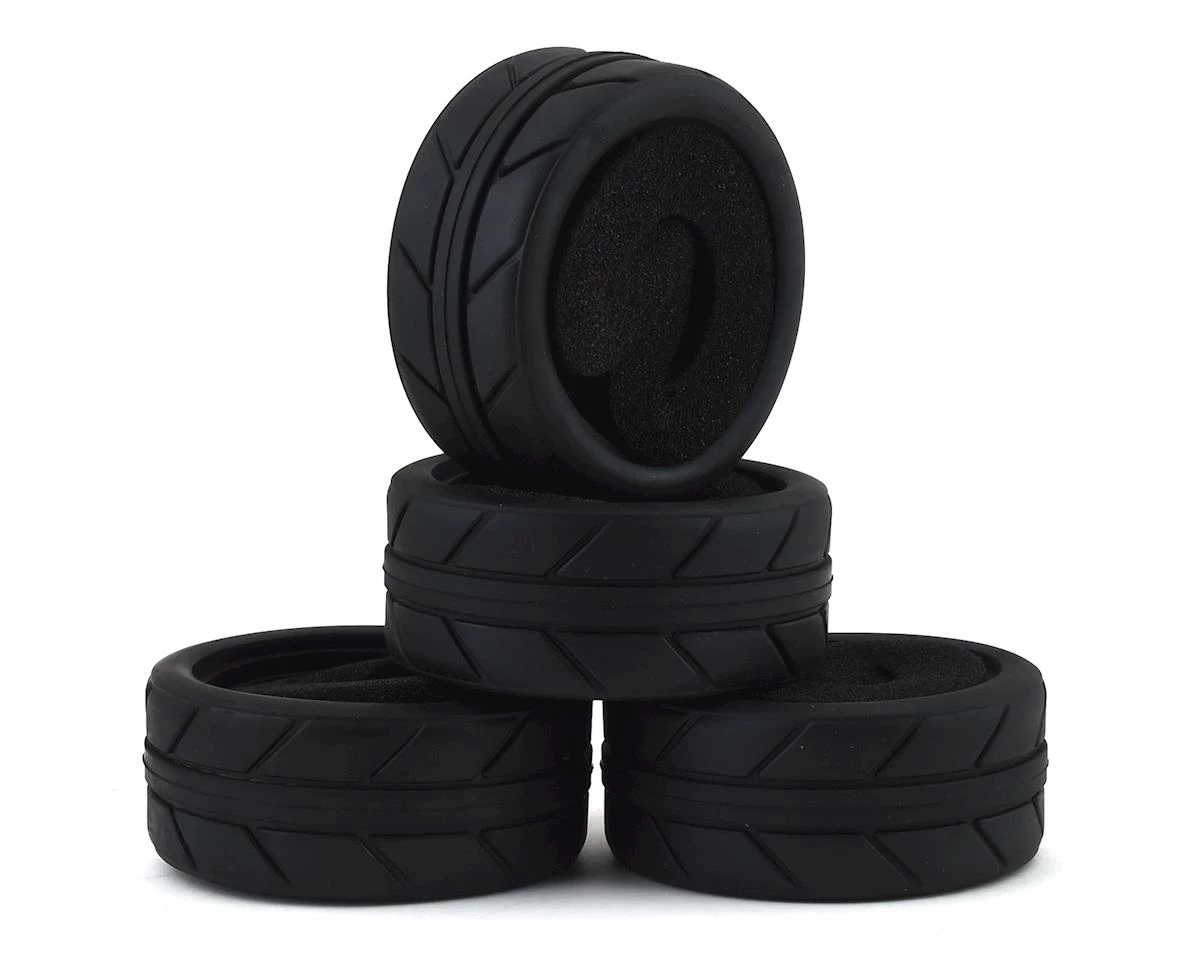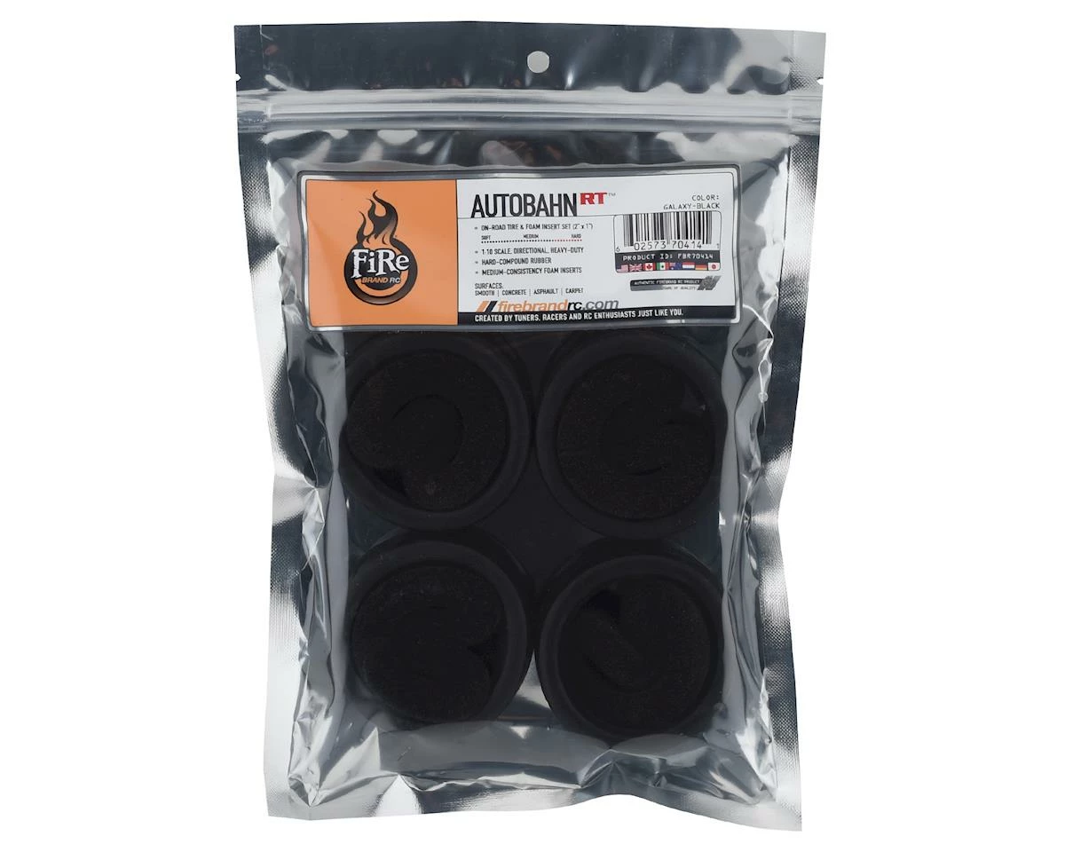 This is a pack Firebrand RC Autobahn RT On-road Race Treads Tires with Foams, a complete set of heavy-duty, dependable, directional tires. This set includes four Autobahn tires and four medium FireBrand race foams made of a medium-hard compound rubber that makes this the ideal street or track tire. Tough, and forgiving – this tire keeps you in control, even at high speeds. The large and thick tread pattern allows for precise handling in all on-road conditions. Enjoy the satisfying feel of traction and control that a lower-profile tire offers. Lowering your car’s center of gravity virtually eliminates chassis-roll and cuts down on spin-outs or loss of control. Easy to install on 1/10 scale wheels with CA glue (Cyanoacrylate) and the FireBrand RC, Exposer tire tool (FBR1ACCEXP633).