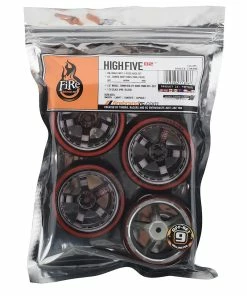 Firebrand Highfive D29 Pre-Mounted Slick Drift Tires feature HighFive-D2(9) on-road drift wheels mounted to D2 drift tires. Both are made from the highest quality ABS plastic and rubber materials available. The D2 tire is an ultra low-profile, low-traction, 2-piece ABS plastic-piped drift tires. These drift wheels and 2-piece red-wall tires fit most 1:10 scale, on-road, radio-controlled cars. 2.0” x 1.0” HighFive drift wheels are available in Smoker’s-Chrome™ and, if desired, can be painted with poly carbonate paint. 12mm, hex-fit hubs w/9mm off-set.