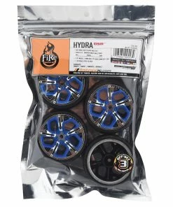 Firebrand Hydra DSR3 Pre-Mounted Slick Drift Tires feature the HYDRA–DSR on-road drift wheel. These wheels are pre-glued and fitted with Sickle-R tires – a super low-profile, low-traction, Drift Slick Race tires. Both are made from the highest quality ABS plastic and rubber materials available. These drift wheels and hard tires fit most 1:10 scale, on-road, radio-controlled cars. 2.0″ x 1.0″ HYDRA drift wheels are available in Ice-Chrome w/Baller-Blue accents and, if desired, can be painted with polycarbonate paint. Package includes four premounted tires.