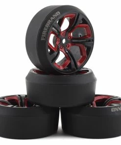 Firebrand Hydra XDR3 5° Pre-Mounted Slick Drift Tires feature a unique 5 spoke design with red accents that will provide an awesome custom touch to your build. These wheels are pre-glued with Diamond tires – a super low-profile, low-traction, 45°/5° double-beveled drift-race tire. The combo is made from the highest quality ABS plastic and rubber materials available. These drift wheels and tires fit most 1:10 scale, on-road, radio-controlled cars. 2.0″ x 1.0″ HYDRA drift wheels are available in Galaxy-Black w/Rocket-Red accents and, if desired, can be painted with polycarbonate paint.