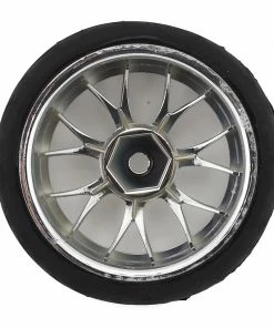 Firebrand Incinerate RT Pre-Mounted On-Road Tires feature the INCINERATE-RT on-road race wheel mounted to FireFang treaded racing tires. Both are made from the highest quality ABS plastic and rubber materials available. The FireFangs tires are a low-profile, medium-compound, treaded race tire. These wheels and tires fit most 1:10 scale, on-road, radio-controlled cars. 2.0″ x 1.0″ Incinerate-RT race wheels are available in CHROME and, if desired, can be painted with poly carbonate paint. 12mm hex-fit hubs w/3mm off-set.Â