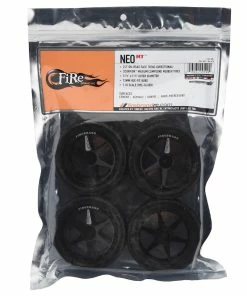 Firebrand Neo RT 2.2 Pre-Mounted On-Road Tires were developed for those that want to unleash their off-road kit on to the street. The Neo-RT 2.2″ is one of the most versatile wheel and tire combinations available today. Made from the highest quality ABS plastic and rubber materials available. The wheels arrive at your door fitted with Scorpion, directional race tires. Made from medium-compound rubber, Scorpion tires give you maximum traction on fast, on-road surfaces. These all-new race wheels and tires fit most 1:10 scale off-road, radio-controlled cars, buggies and trucks. NEO race wheels are available in BLACK and, if desired, can be painted with poly-carbonate paint. Wheel size is 2.2” x 1.25”, outer diameter is 3.25” x 1.25”. 12mm, hex-fit hubs. Pre-glued set of 4.