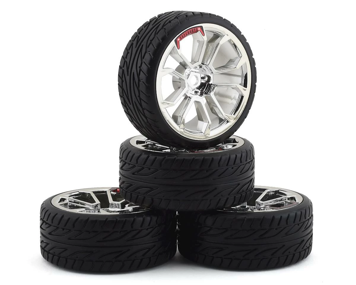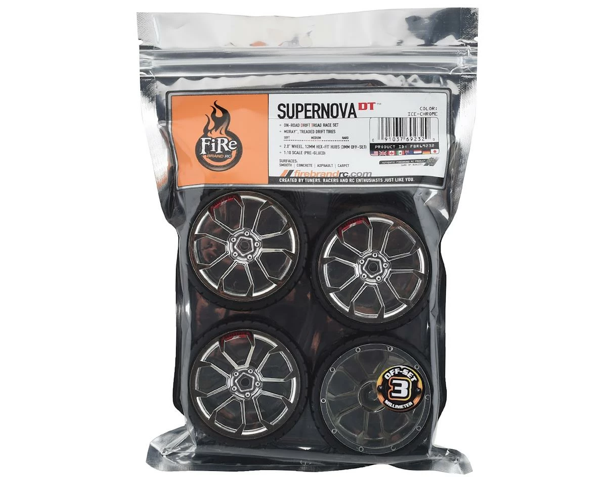 Firebrand RC Trodrag RT3 Pre-Mounted On-Road Tires (4) (Chrome) W/Fang Tires, 12mm Hex & 3mm Offset