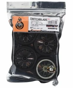 Firebrand Switchblade RT6 Pre-Mounted On-Road Tires are a deep-dish on-road wheel, premounted with Daggers tires – a low-profile, medium-compound, treaded street tire. Both are made from the highest quality ABS plastic and rubber materials available. These fit most 1:10 scale, on-road, radio-controlled cars. 1.9″ x 1.0″ SwitchBlade drift wheels are available in Smoke Chrome and, if desired, can be painted with poly carbonate paint. 12mm hex-fit hubs w/6mm off-set.