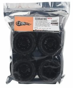 Firebrand Terrafire MTX Pre-Mounted Off Road Tires are an off-road wheel and tire option that does it all. Not only will they fit your Slash™, Stampede™ AND TRX-4™ – they’ll fit just about ANY 1:10 scale, off-road RC vehicle. At 2.9 inches, these wheels will clear the larger suspensions while the tires maintain a lower-profile stance. Lowering your vehicles center-of-gravity also provides less roll and more traction in extreme situations. Mud, dirt, grass, sand, or snow – Fracker directional treads dig and dig through the slickest bogs you can create. Fracker tires guarantee more control during major acceleration. Plus, you’ll get even more traction from the deep off-set hubs that extend the tire out further from the chassis. Made from the highest quality, nylon-spun plastic available. (Set of 4, Pre-glued) Wheel size with tire is: 2” (55mm) x 4.5” (115mm) with 12mm, hex-fit hubs.
