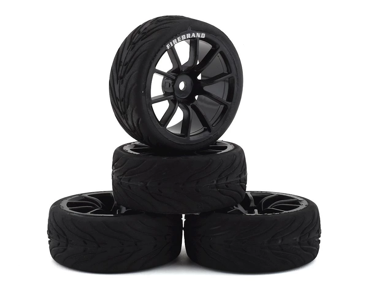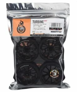 Firebrand Turbine RT3 Pre-Mounted On-Road Tires feature the Turbine-RT on-road race wheel mounted to Fang treaded racing tires. Both are made from the highest quality ABS plastic and rubber materials available. The Fangs are a low-profile and directional, medium-compound, treaded race tire. These wheels and tires fit most 1:10 scale, on-road, radio-controlled cars. 2.0″ x 1.0″ TURBINE race wheels are available in GALAXY BLACK and, if desired, can be painted with poly carbonate paint. 12mm hex-fit hubs w/3mm off-set.