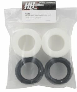 This is a set of two Hot Bodies Fullslot 1/10 2WD Buggy Front Tires. Hot Bodies Fullslot tires are suitable for hard & dry off-road surfaces such as hard-packed clay and ‘blue groove’. Pins and bars combined with ribs running the sides of the tires make these good for a multitude of surfaces as well as providing consistent side bite. These tires complement HB Beams tires well.