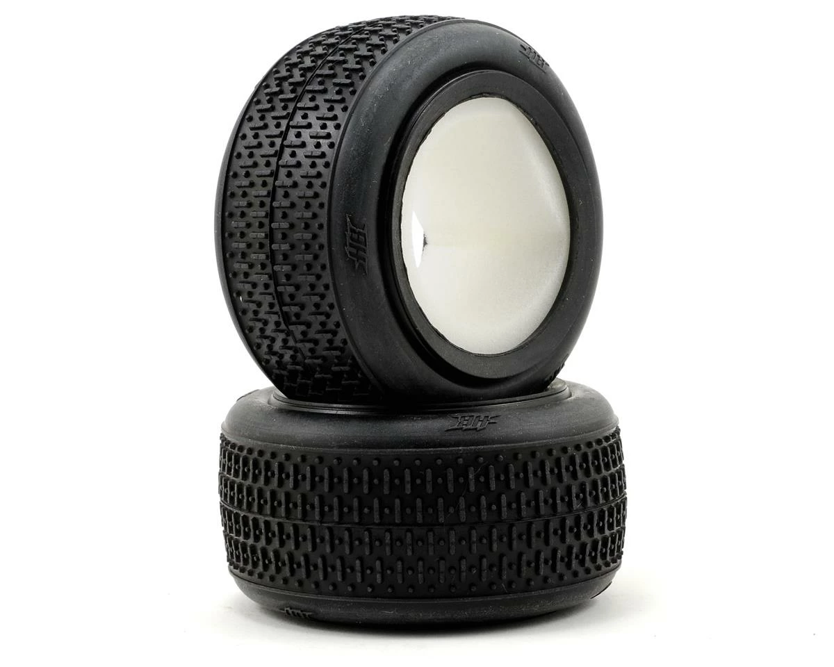 This is a set of two Hot Bodies Fullslot 1/10 4WD Buggy Front Tires. Hot Bodies Fullslot tires are suitable for hard & dry off-road surfaces such as hard-packed clay and ‘blue groove’. Pins and bars combined with ribs running the sides of the tires make these good for a multitude of surfaces as well as providing consistent side bite. These tires complement HB Beams tires well.