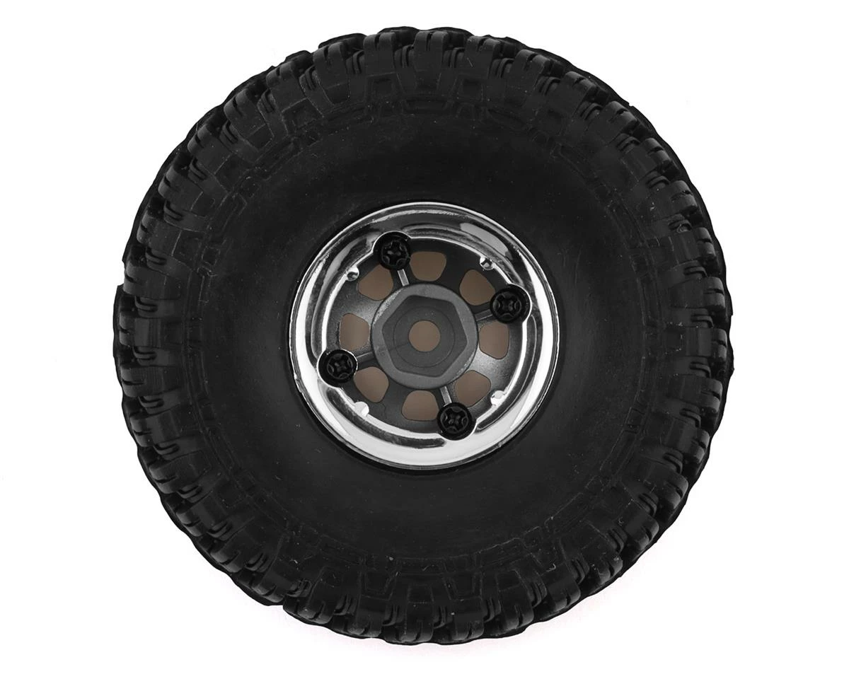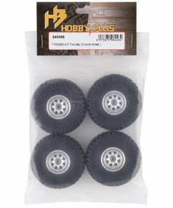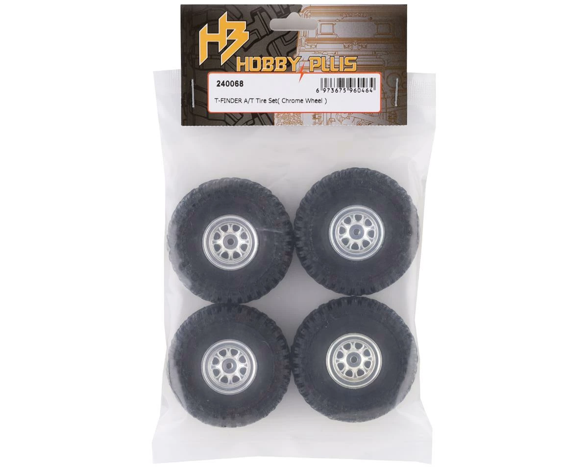 This HobbyPlus CR-18 Chrome Beadlock T-Finder A/T 1.0″ Pre-Mounted Tire Set is a tire set intended for use with the CR-18 Scale Mini Crawlers. These pre-mounted tires feature an approximate 2.2x.75″ profile, with an aggressive and incredibly realistic tread pattern and sidewall details. The 1.0″ beadlock wheels feature a 3-piece design with an 8 spoke D-hole pattern to complete the package. Package includes four pre-mounted tires.  Â