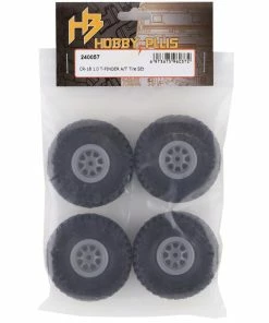 This HobbyPlus CR-18 Grey Beadlock T-Finder A/T 1.0″ Pre-Mounted Tire Set is a tire set intended for use with the CR-18 Scale Mini Crawlers. These pre-mounted tires feature an approximate 2.2x.75″ profile, with an aggressive and incredibly realistic tread pattern and sidewall details. The 1.0″ beadlock wheels feature a 3-piece design with an 8 spoke D-hole pattern to complete the package. Package includes four pre-mounted tires.   Â