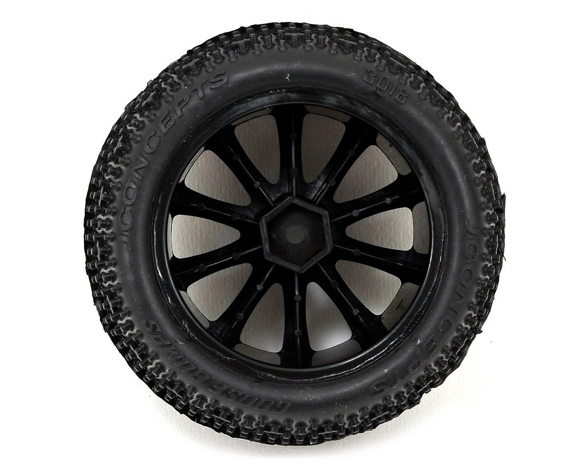 This is a pack of two JConcepts Goose Bumps Tires in green compound, Pre-Mounted on black Rulux Wheels. The traction and performance of the Goose Bumps is a known commodity. Now, it can now be added to the wildest 1/16th scale truck on the market. Bring the performance of the 1/16th E-Revo up to speed and hit the easy button with JConcepts.