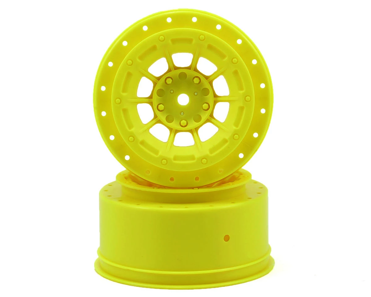 This is a set of two JConcepts 12mm Hex Hazard Wheels, and are intended for use on the front and rear of the Associated SC10 4×4, as well as the SC10 2WD when equipped with a 12mm hex conversion. Short Course trucks have evolved into high-performance racing vehicles and adjustability is always the key to success. The Hazard will make an immediate impact on the performance of the SC10 trucks by widening the stance of the truck by 6mm in overall width. The increased width will maximize the SC10 and bring it up to the ROAR maximum legal limits in dimensional width.