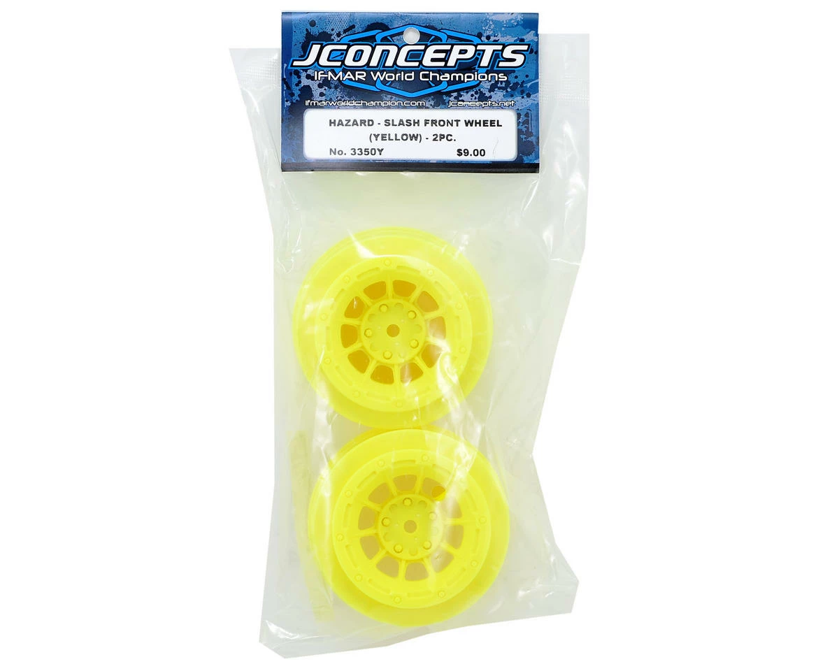 This is a set of two JConcepts Hazard Front Wheels, and are intended for use on the front of the Traxxas Slash. Short Course trucks have evolved into high-performance racing vehicles and adjustability is always the key to success. The Hazard 12mm hex wheel for the Traxxas Slash has a powerful look that combines the winning combination of a 10 spoke design, bead-lock appearance and center lug nut detail with a hint of inspiration from yesteryear. Already a champion, the Hazard wheel earned the top qualifying position and 1st place at the 2011 ROAR Off-Road Nationals in the Pro 2 modified class in the hands of Ryan Maifield. A dominating performance taking the TQ in the first 3 rounds of qualifying and 1st place in A1 and A2 to retain the title for JConcepts.