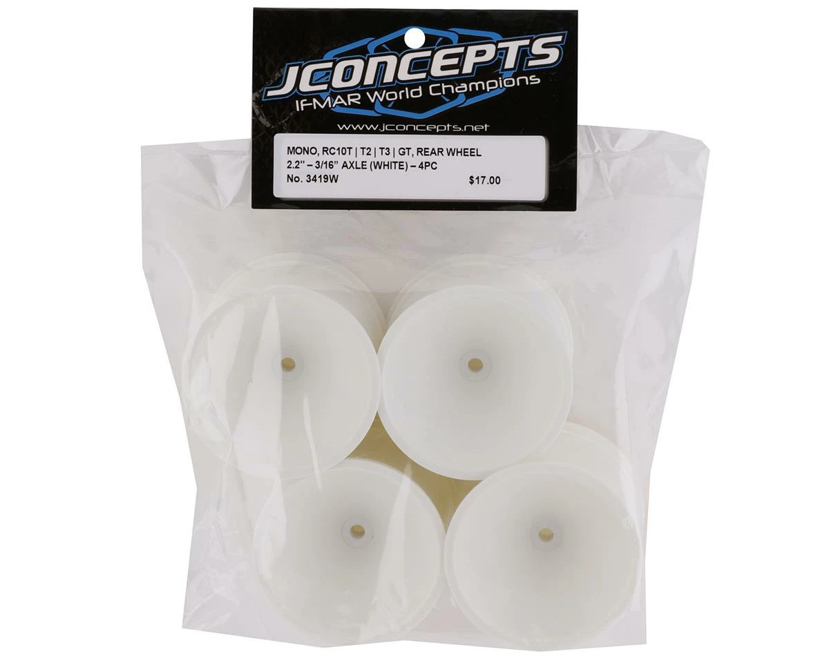 The wheels include a vent hole on the outer diameter and an outer lip to reduce the chances for glue to run down the face of the wheel during glue-up. JConcepts wheels are molded in a durable material with precise techniques to ensure dependability and performance. Mono wheels are available in bright white and fluorescent racing yellow.