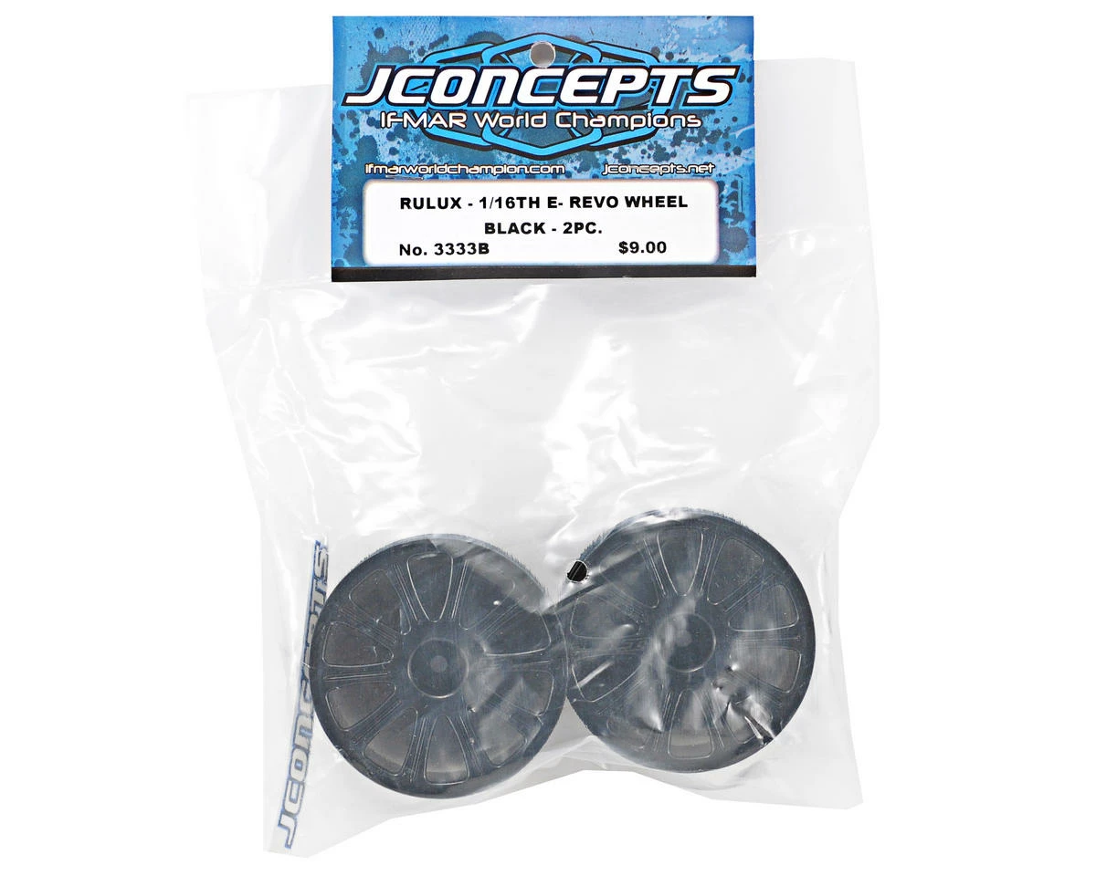 This is a set of two JConcepts Rulux 2.2 Wheels, and are intended for use with the Traxxas 1/16 E-Revo. Upgrade the performance of the 1/16th E-Revo with 2.2” Rulux wheels. The popular Rulux design has been outfitted to give a wider overall stance which improves performance by gained control. With Rulux wheels it is now possible to mount all the popular JConcepts 2.2” buggy tires which provide the ultimate in traction and performance.