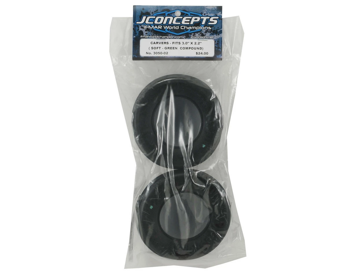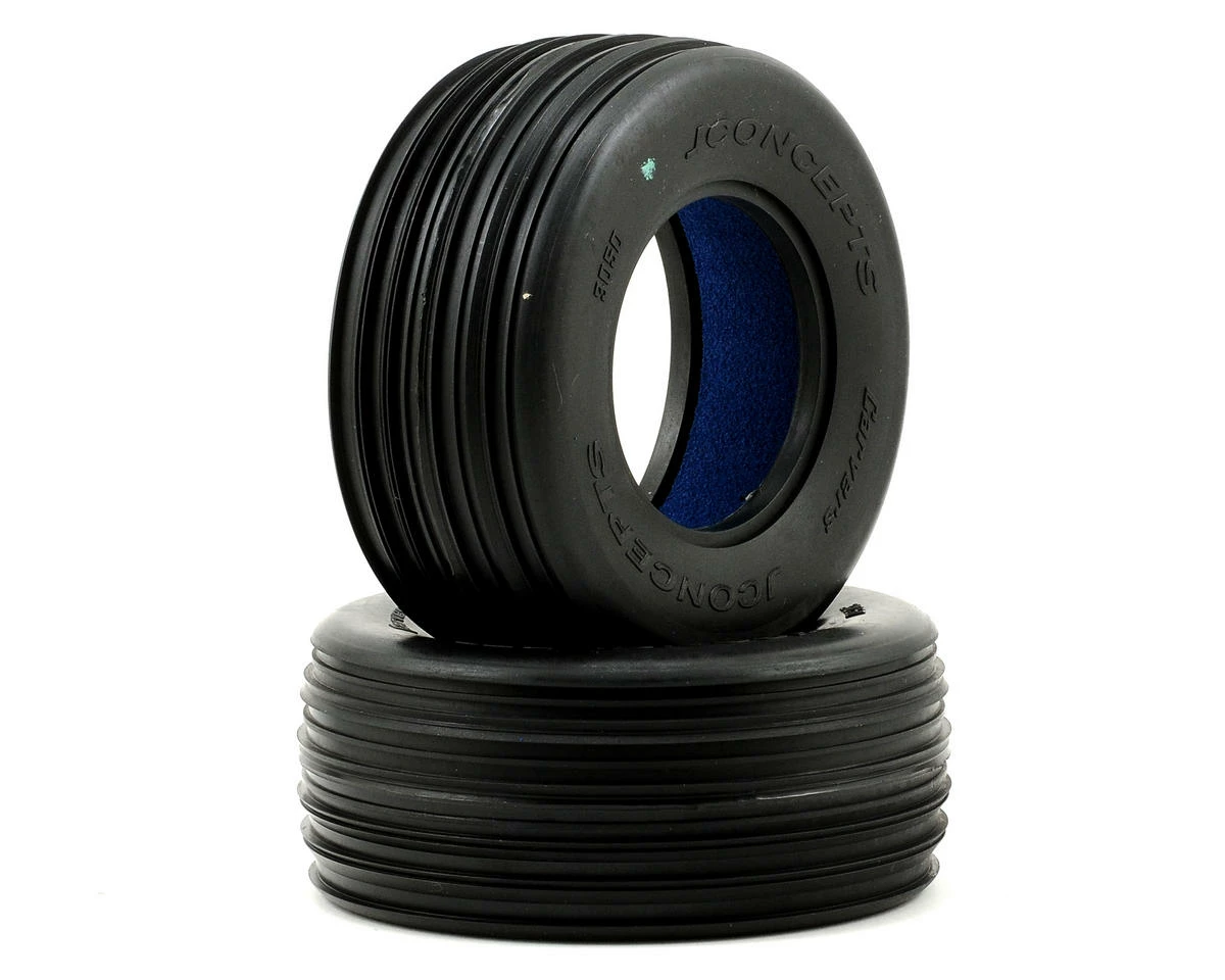 This is a set of two JConcepts Carvers Front Short Course Tires. JConcepts is assisting in making Short Course Trucks easier to drive. The only option for tuning front tires on 2wd SCT trucks has been to use a rear tire, but as the Short Course class has developed and became a true racing class, it is clear that a ribbed tire is something that could be an asset to your bag of tricks. JConcepts is the first to introduce a directional ribbed front tire to Short Course Racing, the Carvers.