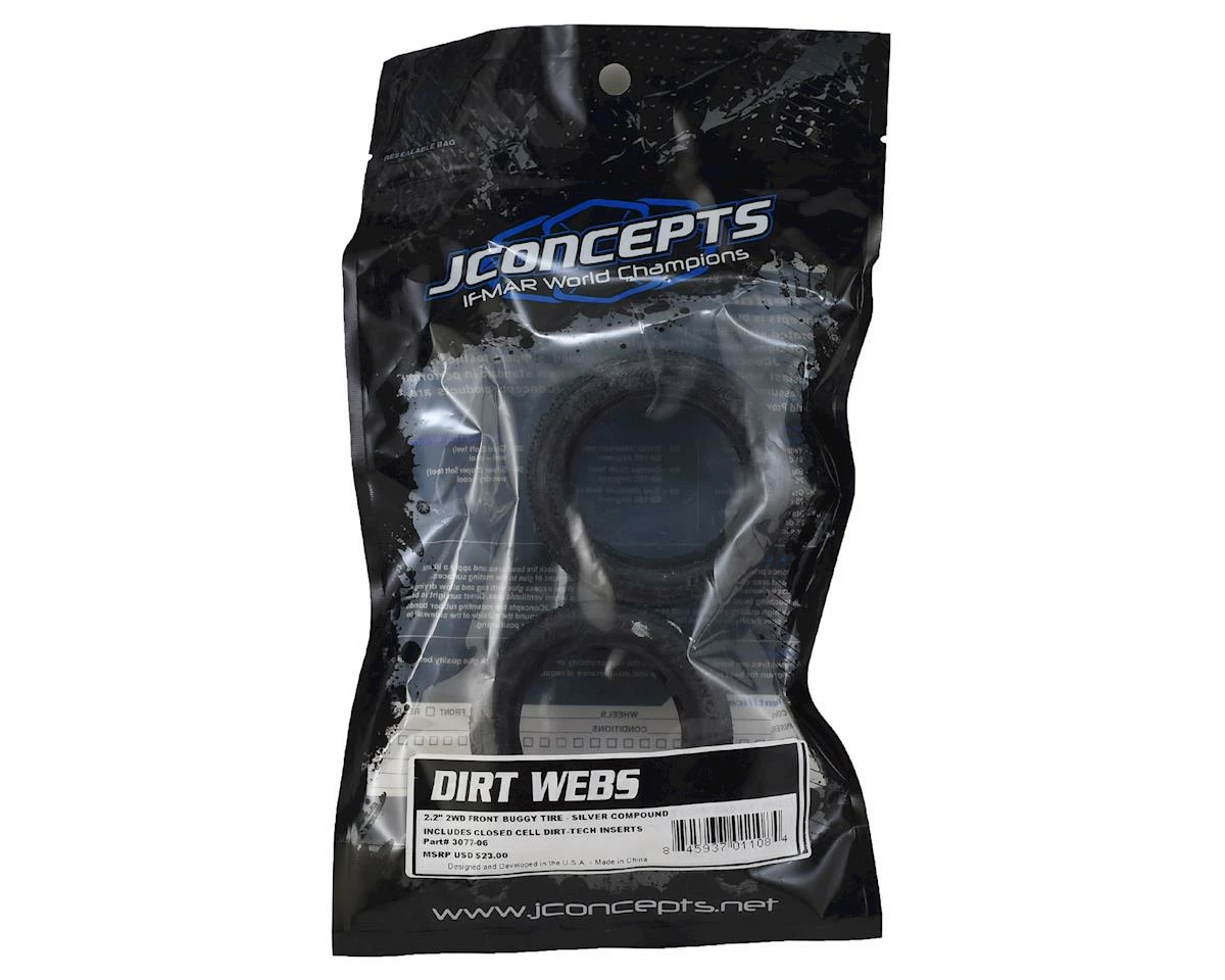 This is a pack of two JConcepts Dirt Webs 2.2 Front Buggy Tires, with And-1 Inserts. During 2012, legendary tire builder, Brian Kinwald, came up with a hand-made tire design. After testing at tracks around the country and working together with JConcepts designer Jason Ruona, the Dirt Webs tire was born. Production tire versions debuted during the 2013 IFMAR World Championships at Silver Dollar Raceway in Chico, CA, where Ryan Maifield used the front tire to his advantage during the A-Final events taking the fastest lap times on his way to a 3rd overall podium finish in the 2wd class.