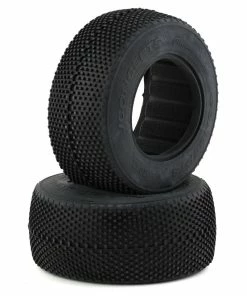 This is a set of two JConcepts Double Dee’s Short Course Tires. The JConcepts Double Dees tire is perfect for a variety of track surfaces. Wear is always the trade off when going to a small pin tire and with the Double Dees for Short Course, these worries have been minimized. Running qualifiers and main events on the same high performance tire is now possible. The Double Dees design is a world leading tire combination right out of the package, the unique technology combined with the sticky Super Soft compound allow the flexibility necessary to compete on even the most demanding surfaces for an extended period of time. Â