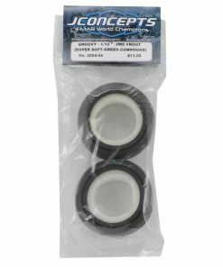 This is a set of two JConcepts Groovy 1/10 2wd buggy tires. The JConcepts Groovy 2wd front tire is perfect for a variety of track surfaces. The Groovy incorporates a compact tire body with sharp 4-rib separation for precise steering input and response.