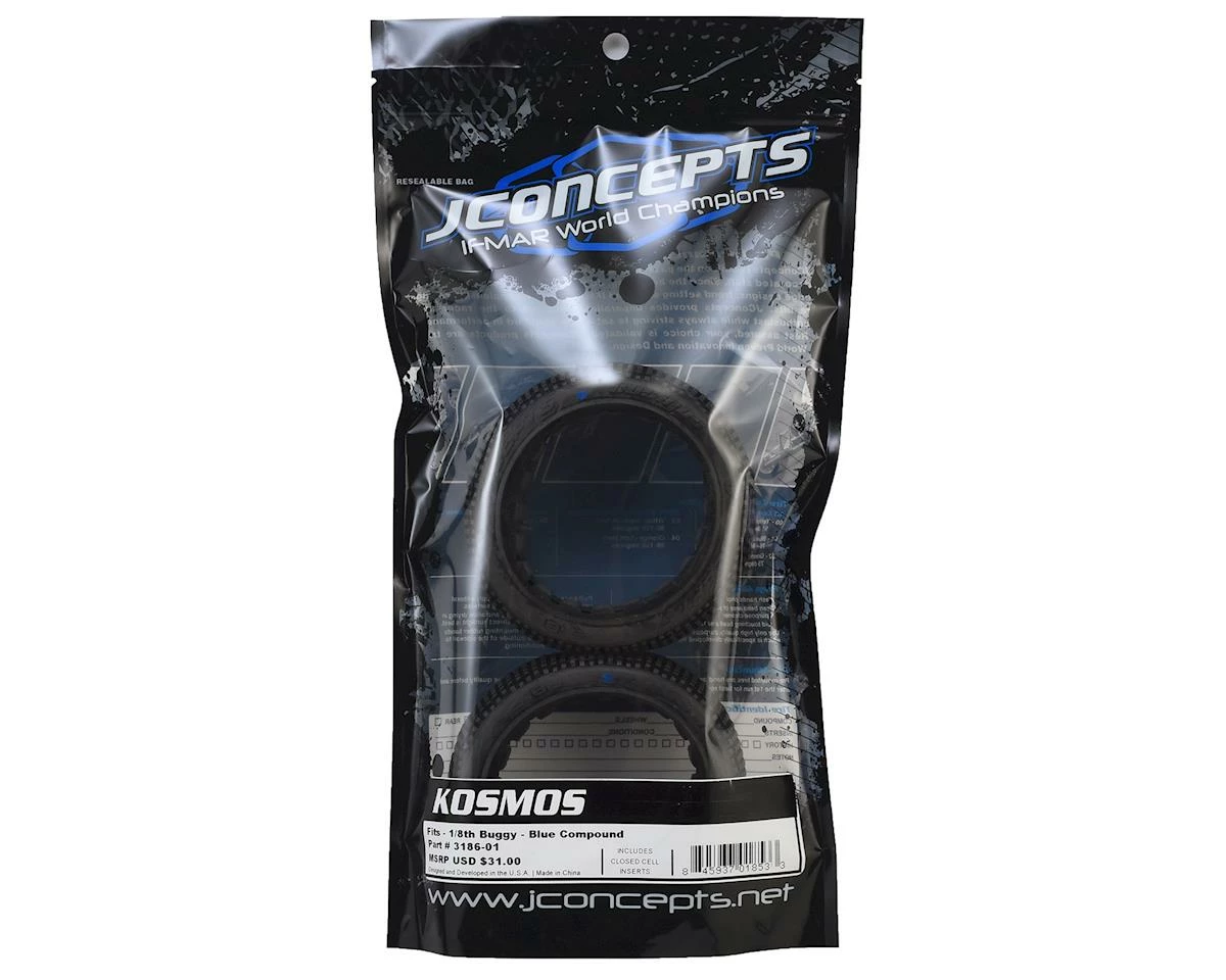 This is a pack of two JConcepts Kosmos 1/8 Buggy Tires, with included foam inserts. When David Ronnefalk joined the JConcepts Racing team, he had a recommendation. “Let’s develop a tire for the Euro drivers where the tracks are more dry, rutted and dusty.” The team set off on a mission by evaluating JC’s past and present tread patterns to arrive at a new build. Tires such as the Hybrid, Chasers and Stackers, already in the line-up, have all served well and have won major events; however, Kosmos has it all.