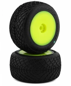 The JConcepts Mini-B/Mini-T 2.0 Ellipse Pre-Mounted Rear Tires were designed to compete on smooth high-grip indoor and outdoor surfaces. The center section of the tire is a “home plate” styled footprint to provide massive surface area for better contact and increased longevity. The web of extensions is unique and have a directional touch giving the racer the ultimate tune-ability. These Ellipse tires come pre-mounted to the JConcepts Mini-T 2.0 Mono Wheels. Package includes two optional pre-mounted tires intended for the front or rear of the Losi Mini-T 2.0 or the rear of the Mini-B.