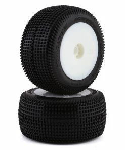 JConcepts Mini-T 2.0 Sprinter Pre-Mounted Rear Tires have square, angled pins that are stacked vertically to flex and fold evenly across the tire. Typically, a stacked tread will wear less and provide more forward bite while the aligned space helps rotation in the turns and gives a snappy release to square up quickly. Starting with the tread, the team focused on durability and performance to bring a rear tire option to market that competes on loose surfaces which are wet or dusty. The Sprinter tires are great for a variety of conditions and have provided grip and traction for stadium trucks for decades.
