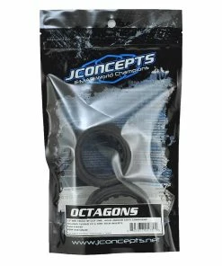 The main surface of the tire has the reliable slick and smooth surface which grips conditions as expected from a JConcepts tire. The Octagons are available in green, black and indoor clay, gold compounds to match just about any racing surface. Each package includes the Dirt-Tech insert, popularized by its durable nature and gray color, provides customers the combo package they have been waiting for from JConcepts.