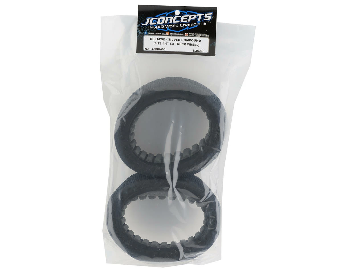 The JConcepts Relapse 4.0″ 1/8th Truggy Tires with Foam Inserts are a tire that have been optimized for indoor and outdoor tracks. This Relapse tire is the result of the research and development JConcepts put into the Detox and Rehab tires and features more forward bite. This tire is available in multiple compounds to best match your driving conditions.