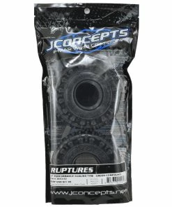 This is a pack of two JConcepts Ruptures 1.9″ Crawler Tires, in Green compound. The Ruptures are that extremely tacky yet versatile tire trailing drivers lust for. The design starts with a layout of individual “large islands” that react to directional and forward loading characteristics like a soft gummy candy. The long horizontal attack bars are connected with solid sidewall detail which braces the sidewall for the high impact situations. The center “mini islands” help maintain spinning speed and at half height provide some space to sling clean during those dirty trail runs.