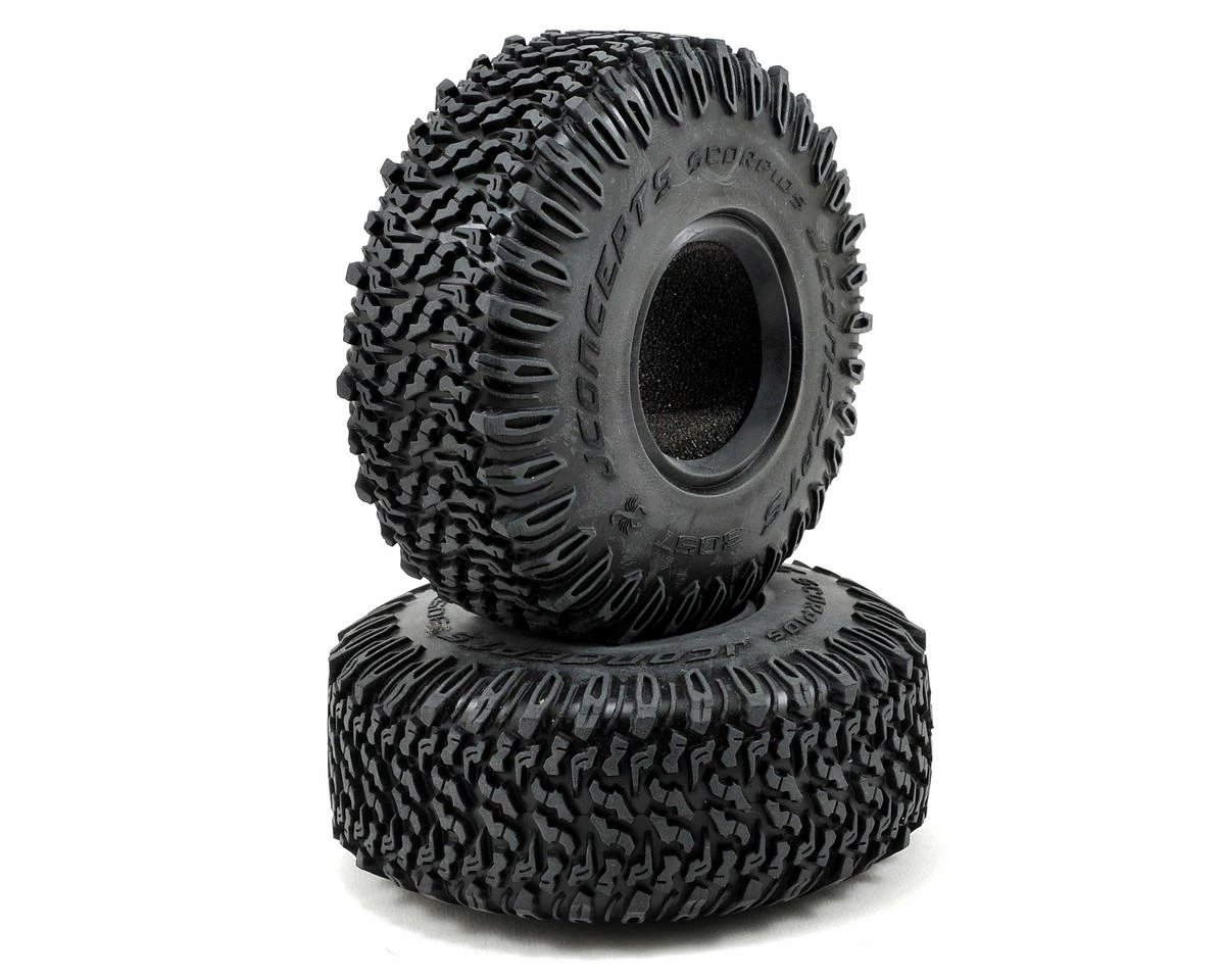 The Scorpios deliver scale looking tread, extra tall size and profile. Starting by analyzing the tread, the design team focused on a closely knit tread arranging them in a pattern closely resembling a 1:1 scale tire. The padded arrangement of tread makes the tire ideal for transitioning from the hard road to dirt and then into rocky and uneven terrain. Once power is applied to the vehicle, the tread spacing opens up which allows for some deep digging making it a great working tire in dirt and muddy conditions.