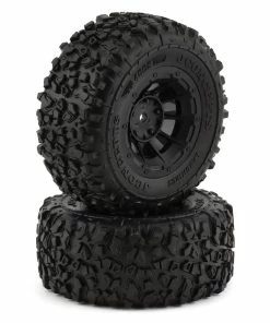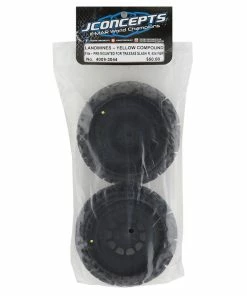 These are the JConcepts Slash Pre-Mounted Landmines SC Tires with Hazard Wheels. Designed as a superb all terrain option for the 2wd Slash rear or Slash 4X4 this Pre-Mounted SCT tire is the perfect all around option. A robust tire carcass gives you excellent durability in rough conditions yet is still flexible enough to conform to terrain.