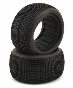 This set of JConcepts Sprinter 2.2″ 2WD 1/10 Front Buggy Dirt Oval Tires is designed to bridge a gap between the popular Double Dees and other pin tire options from JConcepts. The Sprinter tire has square, angled pins that are stacked vertically to flex and fold evenly across the tire. Typically, a stacked tread will wear less and provide more forward bite while the aligned space helps rotation in the turns and gives a snappy release to square up quickly. Starting with the redesigned tread, JConcepts focused on durability and performance to bring a rear tire option to market that competes on loose surfaces which are wet or dusty.