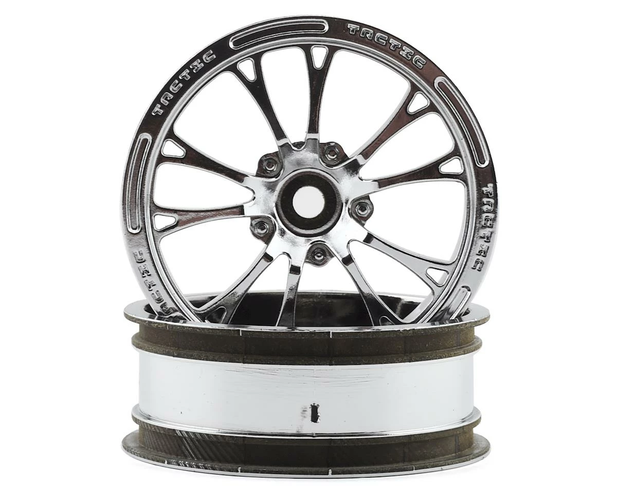The chrome look gives the wheels serious street appearance and look ultra-low under any race car. The Tactic wheels match perfectly with JConcepts Hotties tires (JCO3193 front) and (JCO3194 rear) for the Street Eliminator look. Non-marring 4mm wheel locknuts have been included for a cleaner installation and less damaging installation. (Serrated locknuts are not recommended in this application.)
