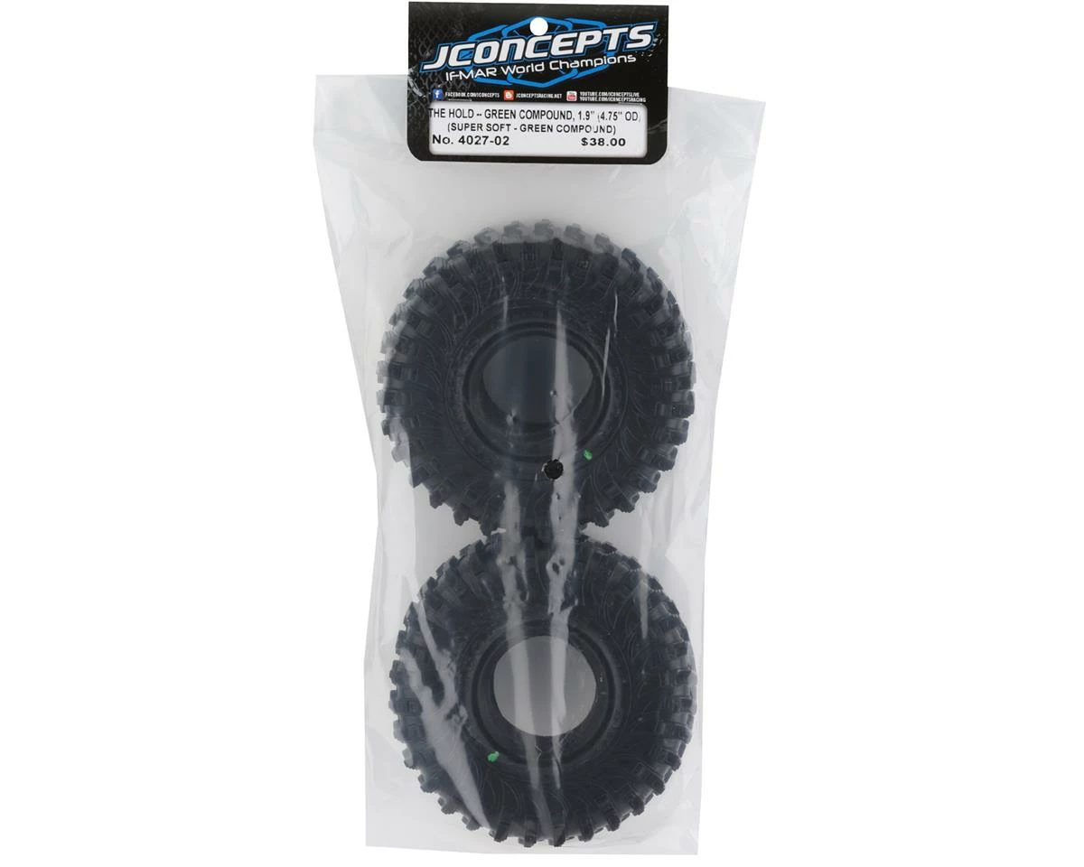 JConcepts “The Hold” scale performance tire brings an aggressive tread pattern while still offering scale looks to match your rig. Using large horizontal traction bars “The Hold” tire gives the user traction in a wide range of terrains. From loose dirt, grass, mud or rocks these offer fantastic all around performance. Offered in the 4.75″ size these offer the large sizer needed to clear obstacles while still looking appropriate on a scale 1/10 crawler.