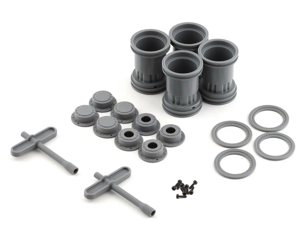 The JConcepts Tribute 1/24th Mini Monster Truck Wheels capture scale monster truck looks in a miniature size. Now available in a 1.1″ size these wheels are the perfect scale option for your 1/24 Monster truck build. This wheel set offers scale beadlock rings and two different hub cap options. Included are open hub caps making wheel removal easy and closed hub caps offering that extra scale touch.