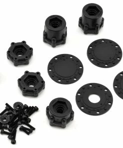 The Tribute wheel includes three off-set wheel adaptors. 11mm width for a stock Clod Buster or retro type Monster Truck width, 18mm for increased stability on standard wheelbase trucks and 25mm for the ultimate in footing for long wheelbase race trucks. The adapters are installed with 6 x 2.5 x 12mm screws and centers precisely on the wheel for positive engagement. The wheels include open and closed planetary caps which attach with 6 x 2.5 x 8mm screws. The planetary caps support a scale look as well as a quick change racer function to suit individual needs.Â