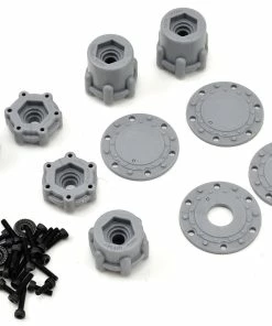 The Tribute wheel includes three off-set wheel adaptors. 11mm width for a stock Clod Buster or retro type Monster Truck width, 18mm for increased stability on standard wheelbase trucks and 25mm for the ultimate in footing for long wheelbase race trucks. The adapters are installed with 6 x 2.5 x 12mm screws and centers precisely on the wheel for positive engagement. The wheels include open and closed planetary caps which attach with 6 x 2.5 x 8mm screws. The planetary caps support a scale look as well as a quick change racer function to suit individual needs.Â