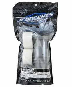 This is a pair of JConcepts Tribute 2.6×3.6″ Monster Truck Wheels in Silver color. The Tribute wheel by JConcepts is for use with vehicles that use a 12mm wheel hex and packs an assortment of options into the design and style that mimics the golden age of Monster Truck racing.