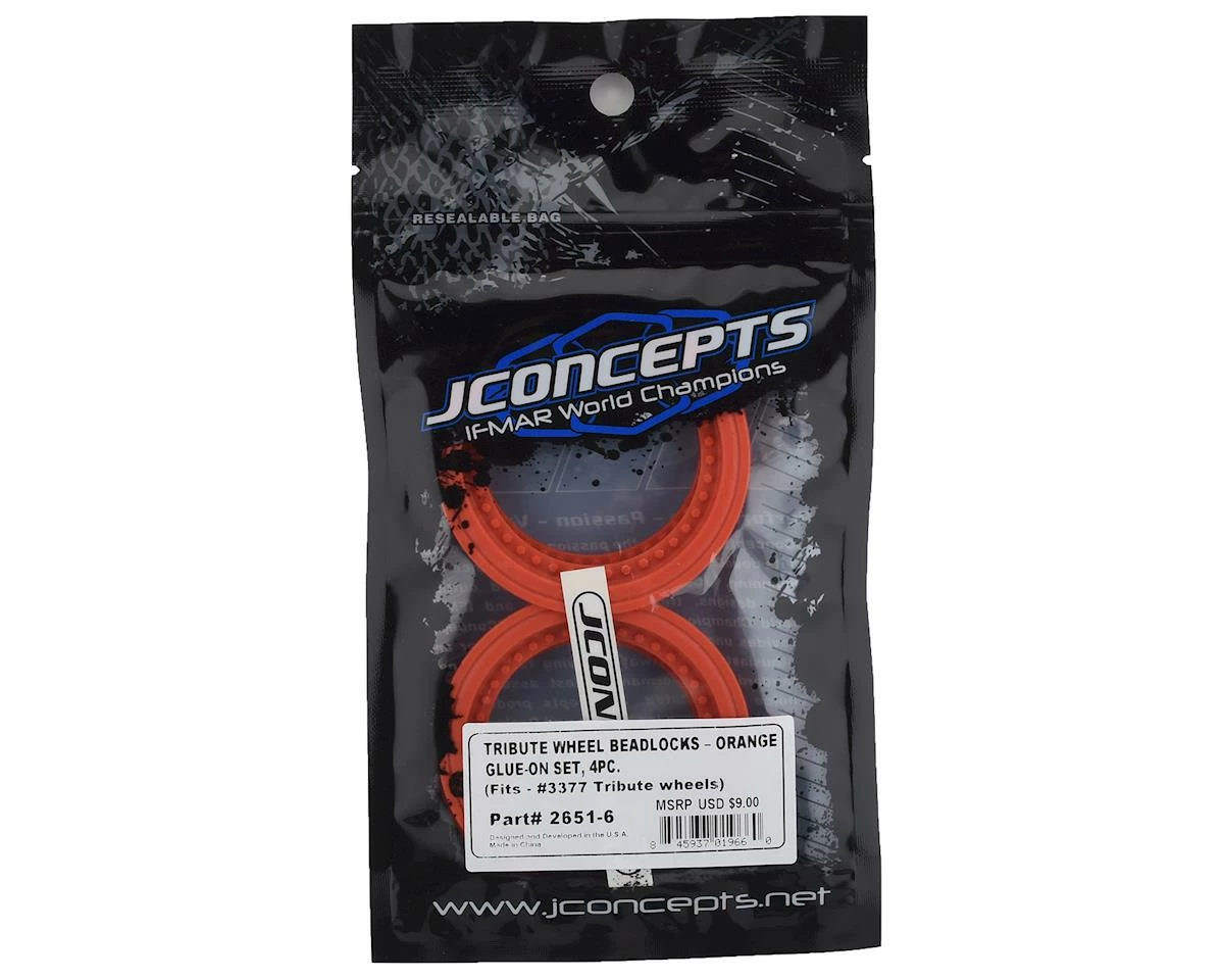 JConcepts Tribute Monster Truck Wheel Mock Beadlock Rings give you the option to add mock beadlock rings to your Tribute wheels. The injection molded, 4-piece set includes details found on today’s monster trucks and can be easily adapted to existing JConcepts Tribute wheels at a low-cost.