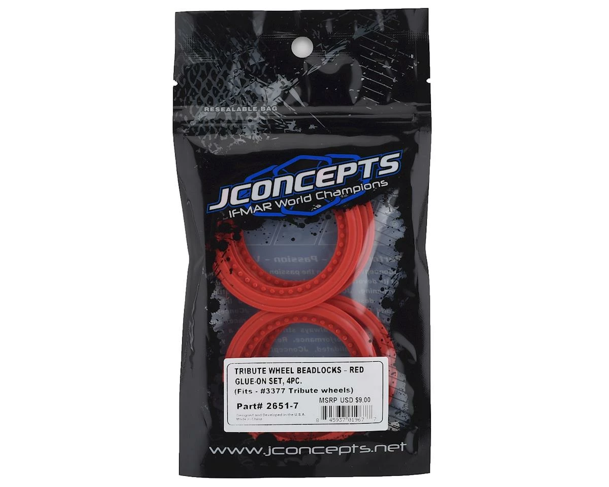 JConcepts Tribute Monster Truck Wheel Mock Beadlock Rings give you the option to add mock beadlock rings to your Tribute wheels. The injection molded, 4-piece set includes details found on today’s monster trucks and can be easily adapted to existing JConcepts Tribute wheels at a low-cost.