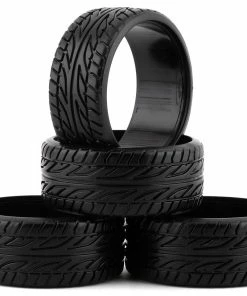 Killerbody 1/10 ABS Treaded Drift Tire Set. These optional drift tires are a great way to throw your drift chassis sideways. Designed to fit 1.9″ drift wheels, these tires have a treaded finish for exceptional detail. Package includes four ABS drift tires.
