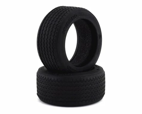 This set of Kyosho Fazer Vintage Sedan Tires is intended for use with Fazer Mk2 kits. This package includes two tires with inserts.