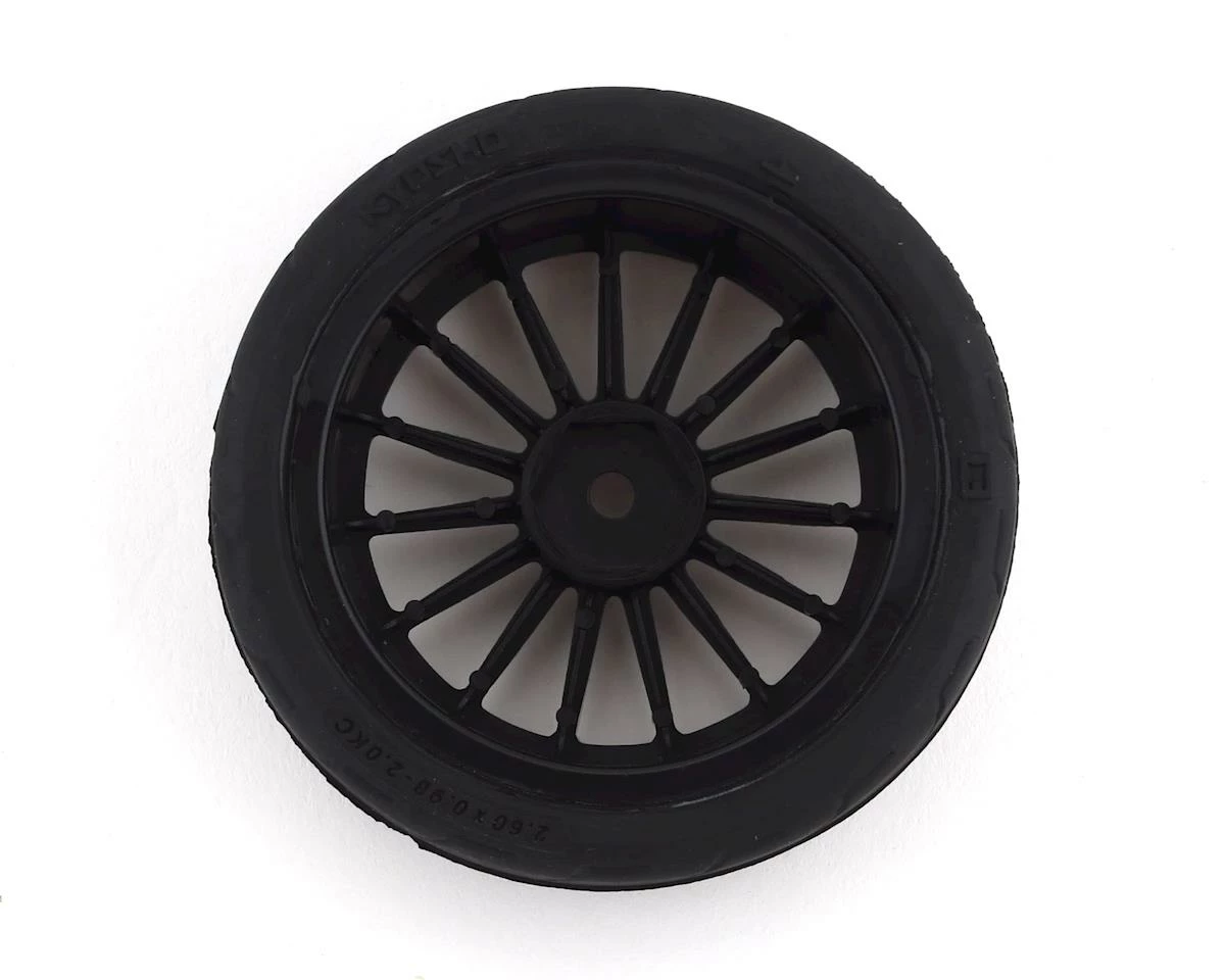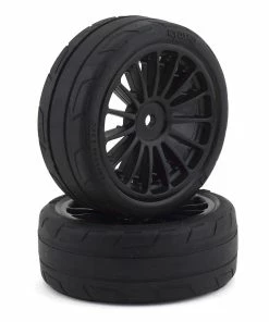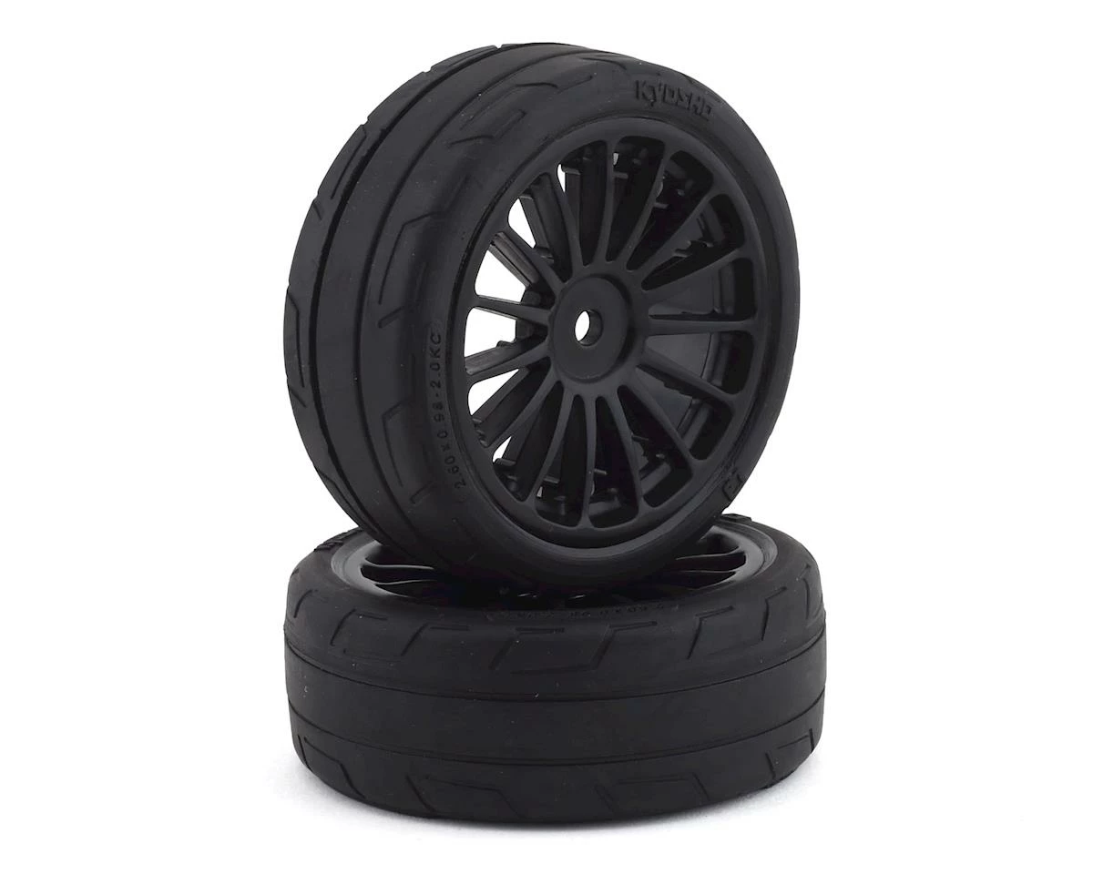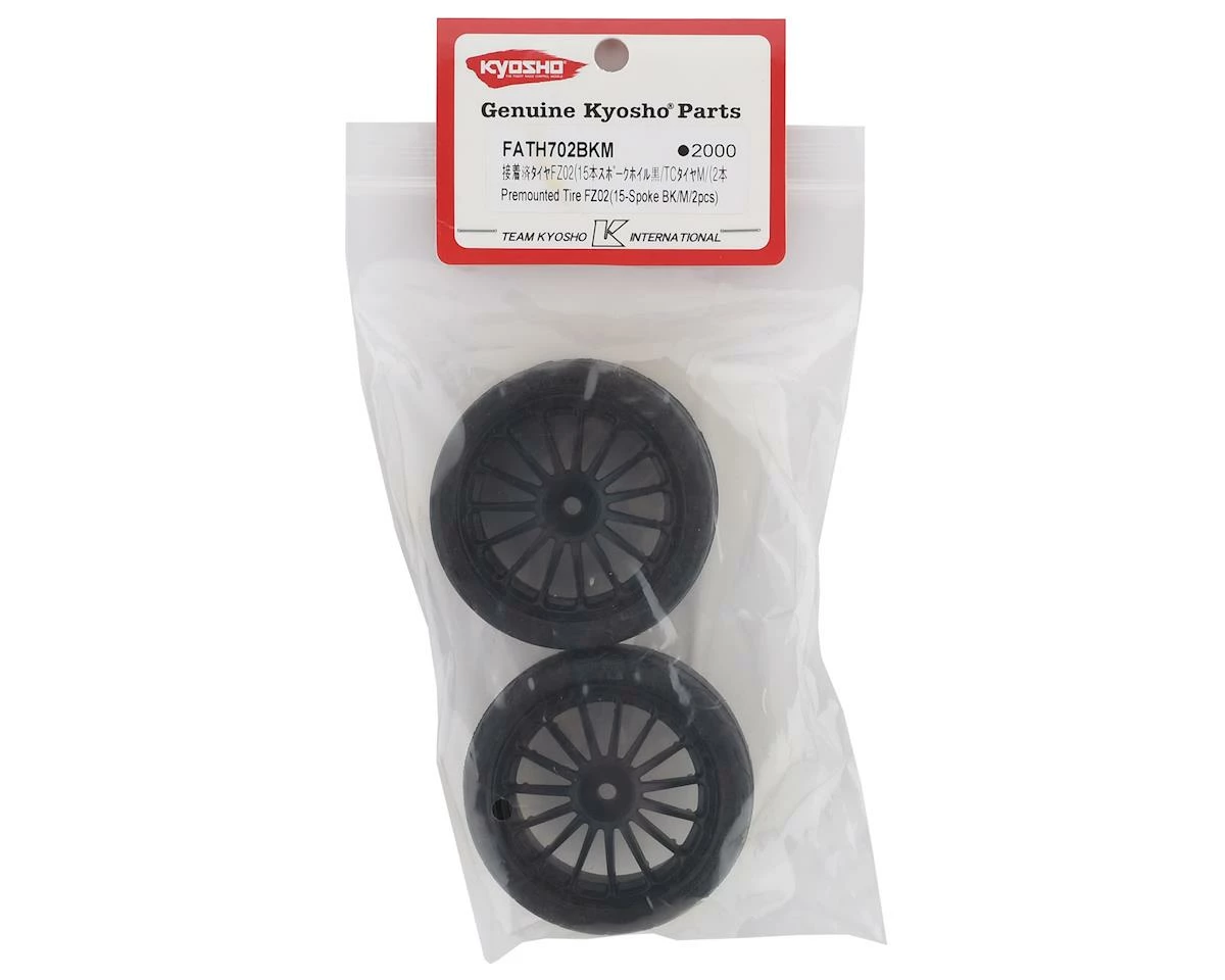 This is an optional set of two Kyosho Fazer Black Pre-Mounted Sedan Tires with 15 Spoke Wheels, intended for use with Fazer Mk2 kits.Â