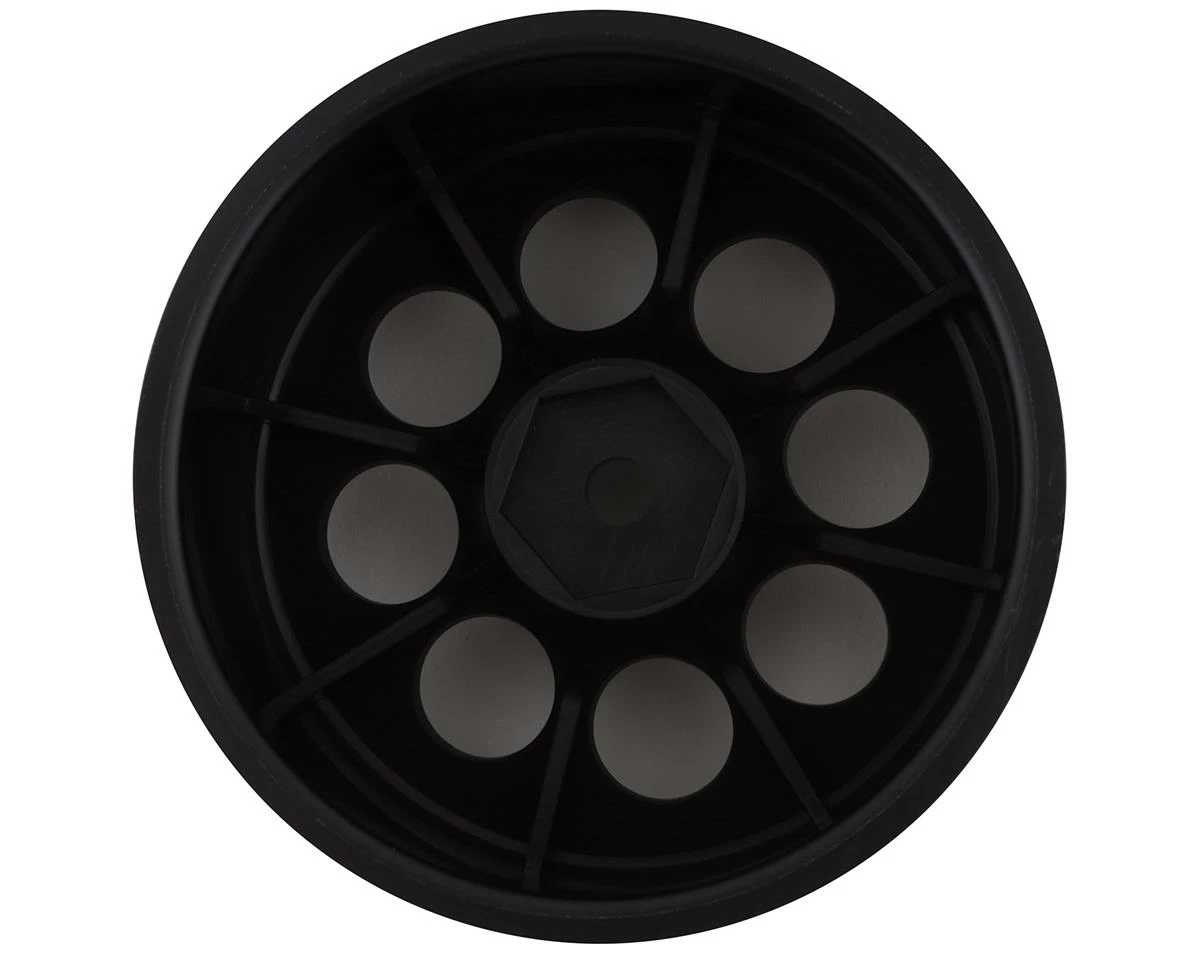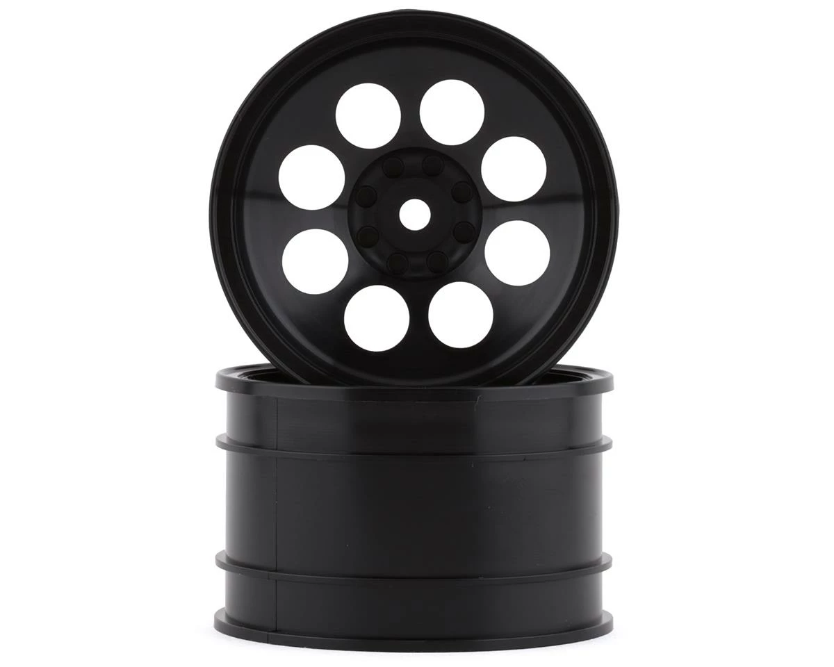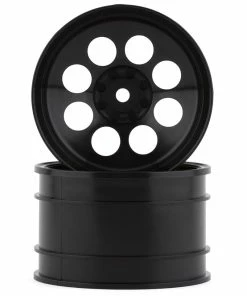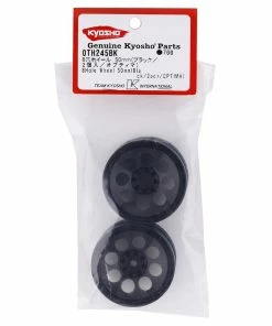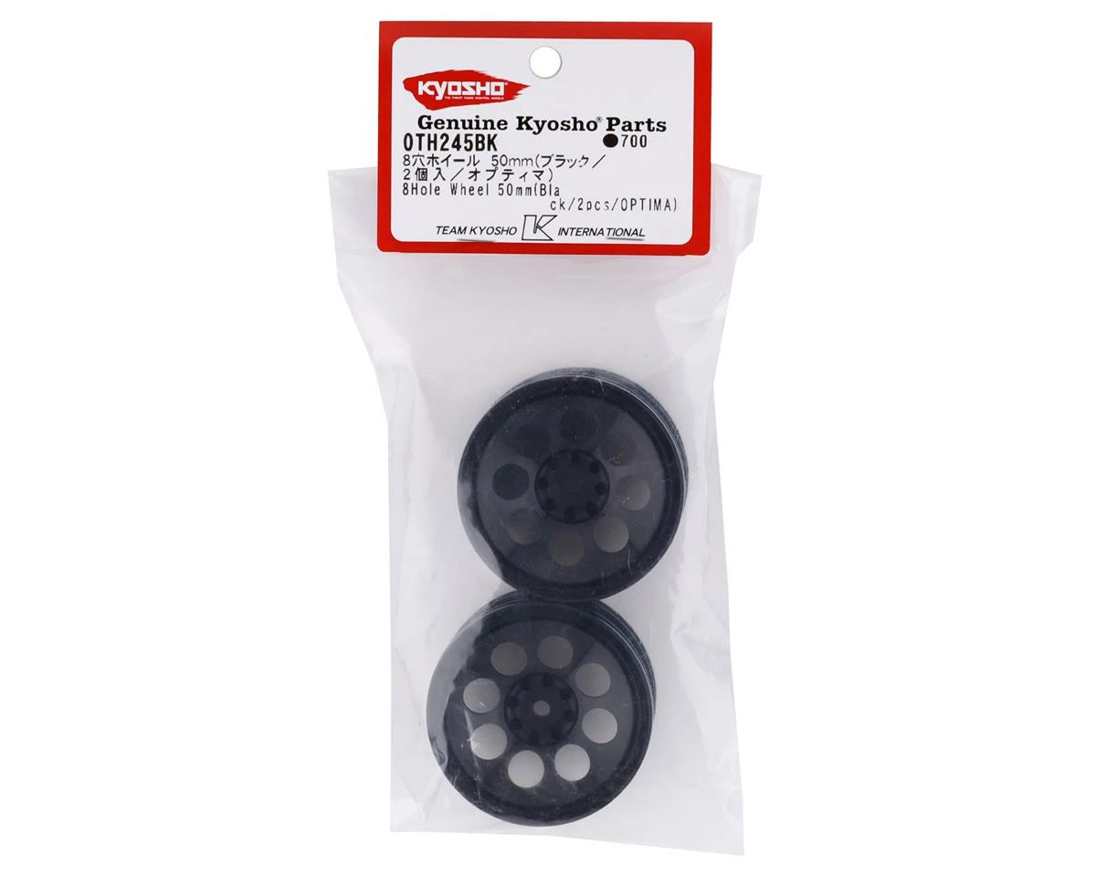 Kyosho Optima 8 Hole Wheel. These optional 50mm wheels are a color variation of the factory wheels found on the Kyosho Optima or Javelin. Package includes two black wheels.