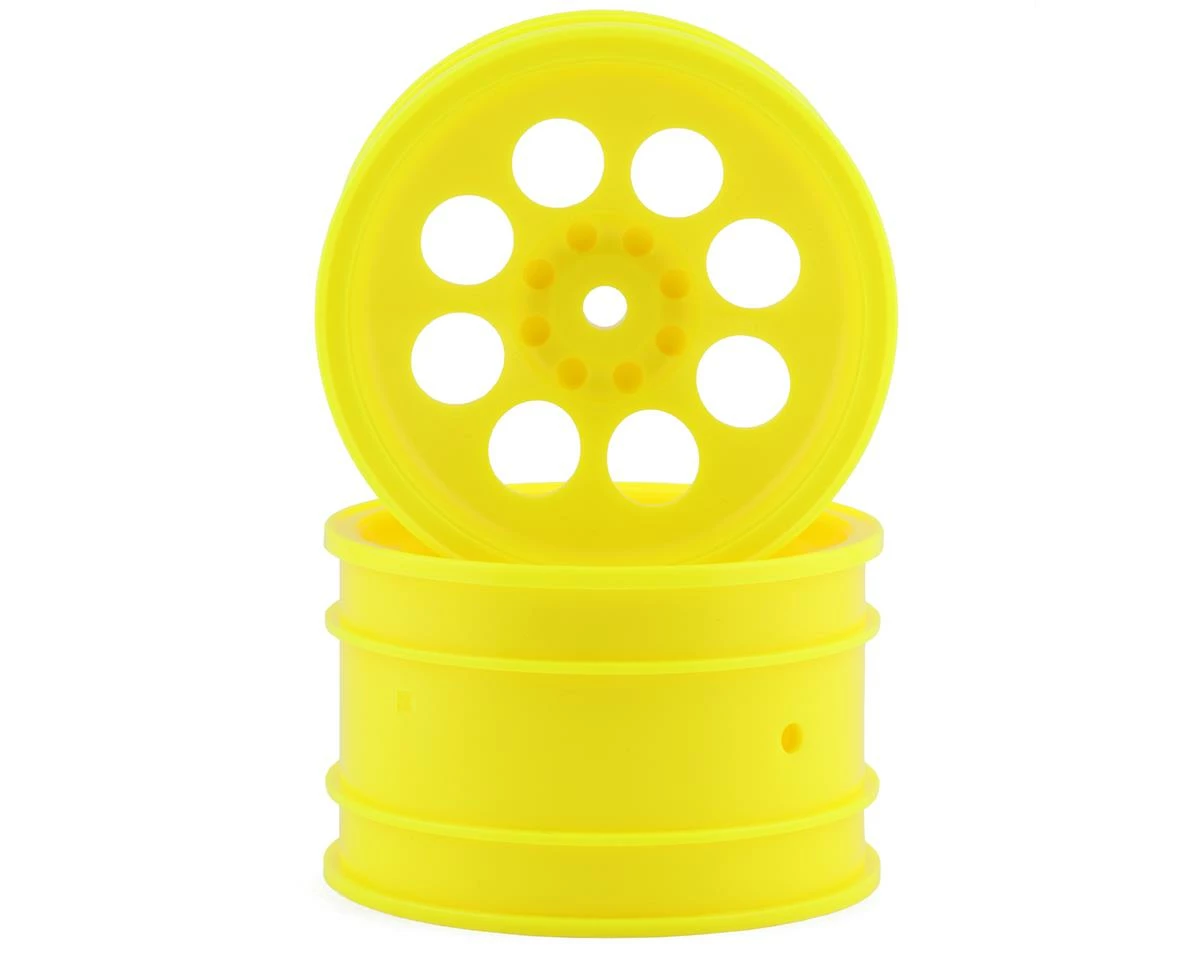 Kyosho Optima 8 Hole Wheels. These optional wheels are intended for the 2016 Kyosho Optima. Package includes two yellow wheels.
