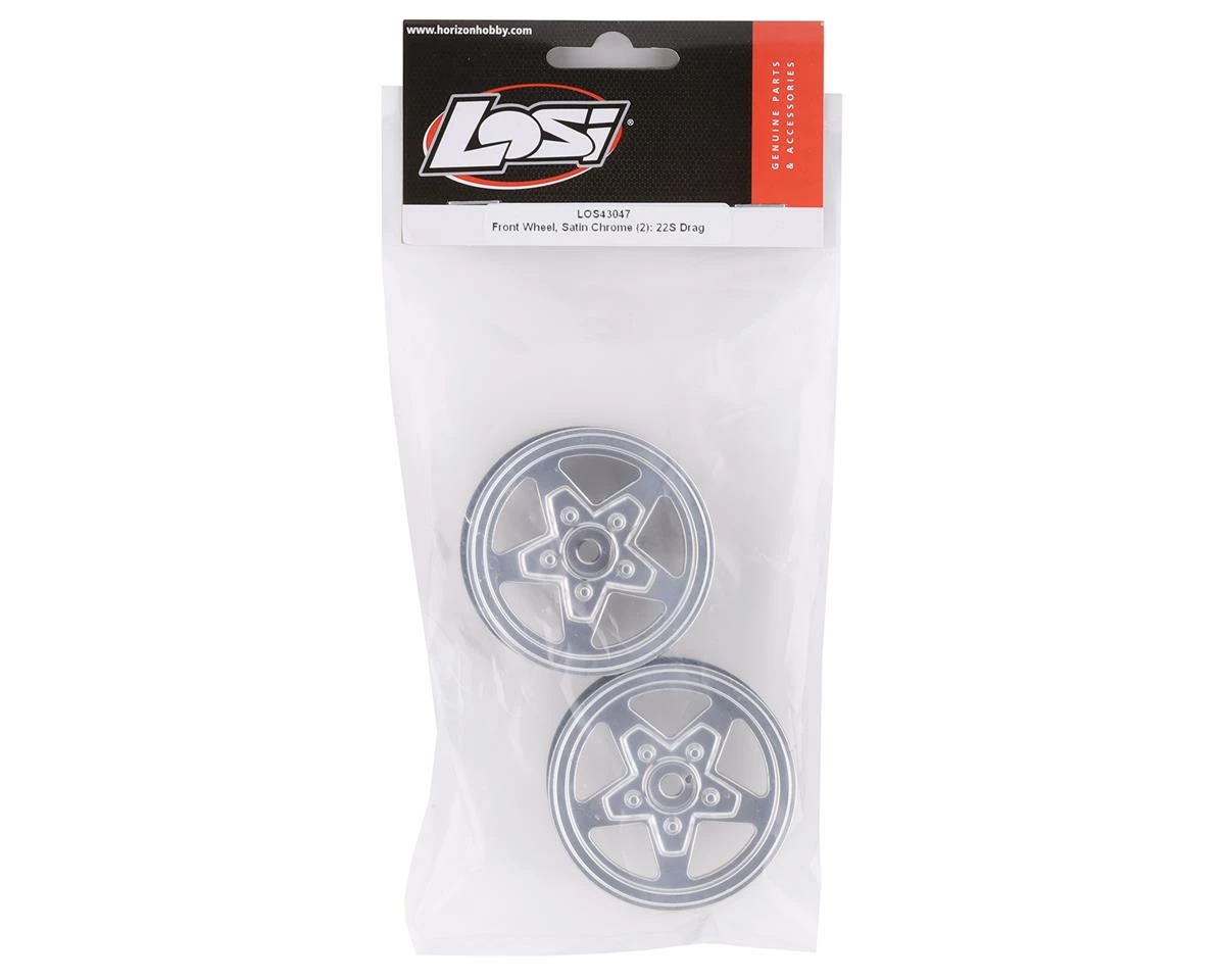 Losi 22S Drag Front Wheel. These replacement wheels are intended for the 22S Drag. Package includes two chrome wheels.