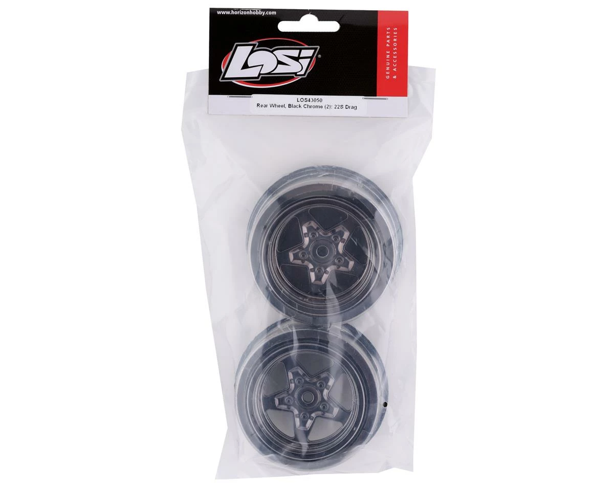 Losi 22S Drag rear Wheel. These optional rear wheels are intended for the Losi 22S Drag. Package includes two rear wheels.
