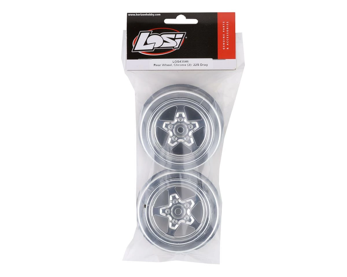 Losi 22S Drag Rear Wheels. Package includes two replacement rear wheels intended for the Losi 22S Drag.
