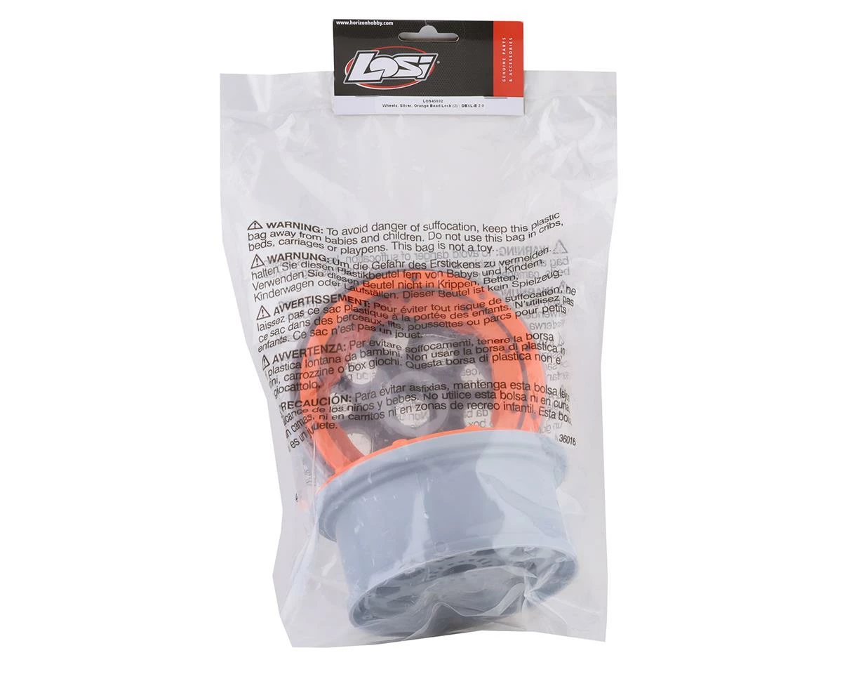 This is a pack of two replacement Losi 4.75″ Beadlock Wheels for use with the DB XL-E 2.0 Desert Buggy. These 1/5 beadlock wheels feature an orange bead, and include the necessary hardware.Â