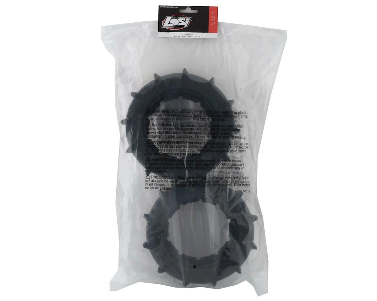 This is a set of two Losi DBXL-E 2.0 Scoops Paddle Tires, intended for use with the Losi Desert Buggy DB XL-E 2.0 8S Electric Buggy.